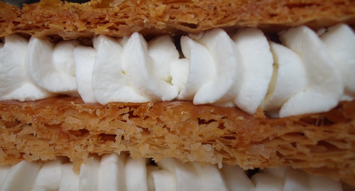Un vasto assortimento di dolci per accontentare anche il più esigente dei clienti, a partire dalla vera Saint Honorè fatta come da ricetta parigina originale, con pasta sfoglia, pasta choux (pasta da bignè), pan di spagna, chantilly, panna montata e bignè caramellati; passando per la Meringhetta alle fragole, la Delicata, oppure la Bavarese alla vaniglia con frutta fresca, un vero capolavoro di freschezza. Trovano spazio Chiboust al mango, ai marron glaces e altri gusti a seconda delle stagioni; Flan di pesche e amarene con chantilly al cioccolato, Foresta Nera, Soufflé di sfoglia con panna montata, crema pasticcera e fragole; oltre alle classiche Millefogli e Crostate di frutta fresca.